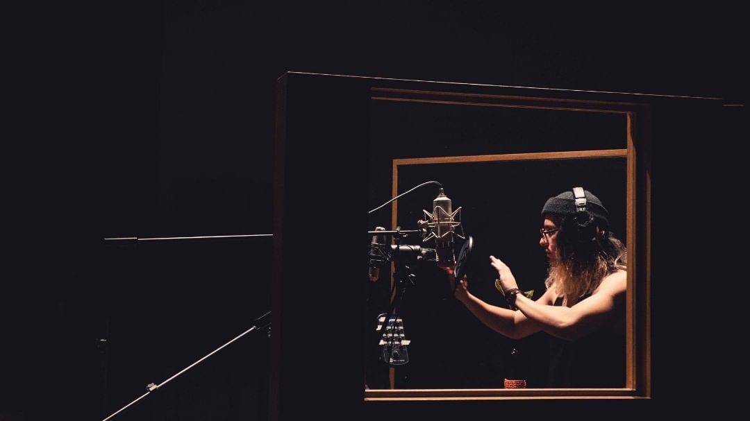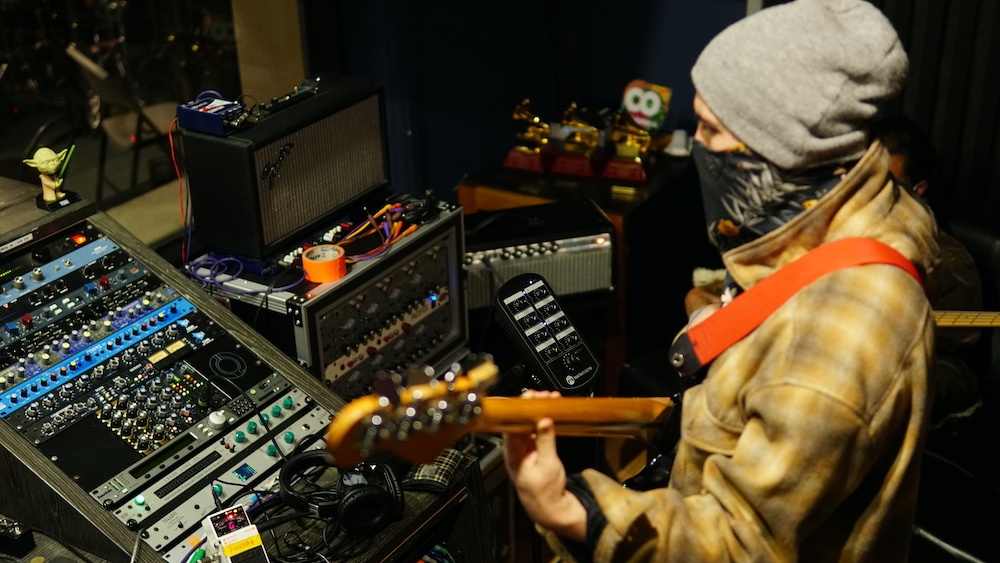 - Vocalista de La Banda del Bisonte usa un mixer Hear Back OCTO para ajustar la mezcla de auriculares en el estudio El Alto en Medellín, Colombia. Crédito: Laura Limon (Instagram: @lauralimon815)