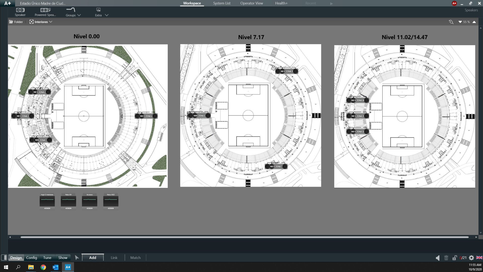 Según el distribuidor EQUAPHON, que participó en la configuración del sistema, la instalación combinó las consolas Quantum con múltiples interfaces DMI para cubrir distintos requerimientos operativos. El sistema quedó conectado mediante tres SD-Racks de 32 bits y un SD-MiNi Rack de 32 bits, además de dos tarjetas MADI C, dos Dante y dos AES/EBU.