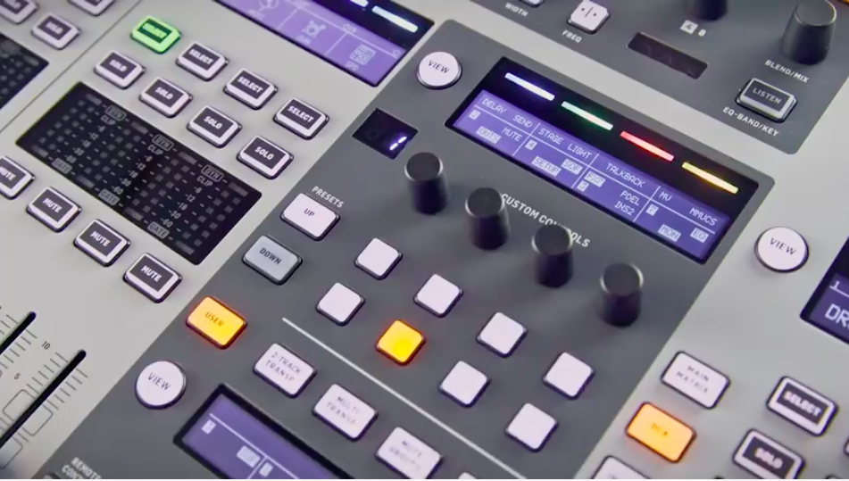 – 4 buses estéreo principales, 8 matrices y 16 auxiliares, con insertos dobles, ecualizadores paramétricos de 8 bandas, generador de imágenes estéreo y procesamiento dinámico completo.