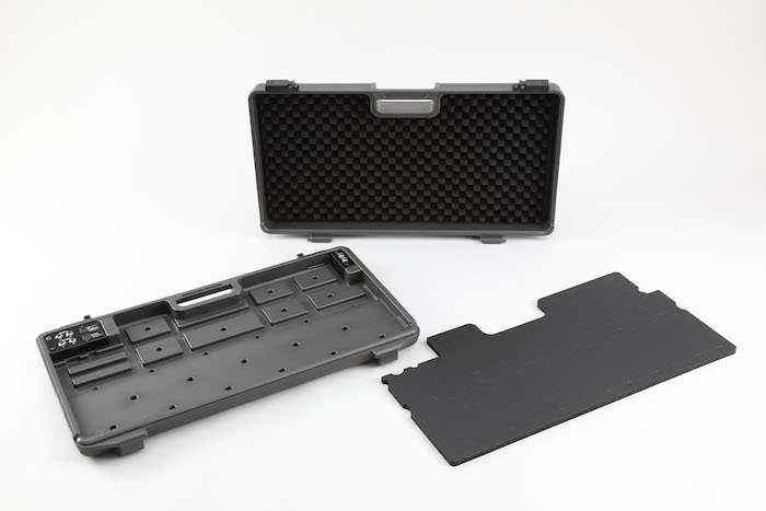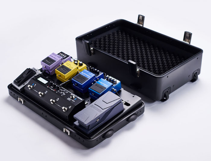 El diseño tipo maleta de la BCB-1000 es resistente y fácil de transportar, así que va muy bien para los músicos profesionales más viajeros. Su tamaño cumple la mayoría de requisitos del equipaje de mano, y las ruedas y asa retráctil facilitan mucho la movilidad. Una superficie de montaje de aluminio admite dos filas de pedales e incluye ranuras para ordenar los cables, con espacio debajo para una fuente de alimentación de terceros. La cadena de pedales se conecta internamente a una caja de conexión integrada, que proporciona una entrada de instrumento y salidas mono o estéreo en la parte trasera de la pedalera.