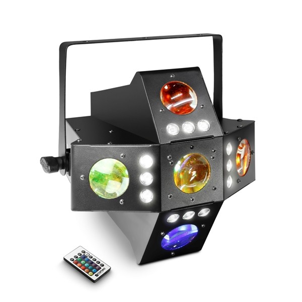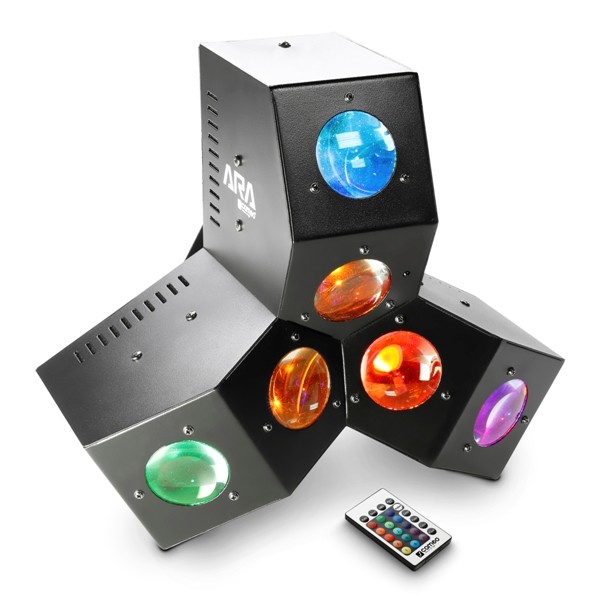Con la estructura de tres brazos y efectos de matriz y derby, el Cameo Ara cuenta con LED de 4 colores (3 vatios) que crean intensos colores RGBA, y mediante el control individual por DMX de los 24 LEDs se consigue un diseño de luces diferente. El Cameo Eye-Eye se caracteriza por ser un potente proyector de efectos de matriz y derby cargado con 24 LEDs de 4 colores que se controlan independientemente por DMX, proporcionando efectos intensos de iluminación RGBA.