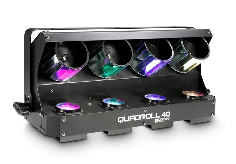 En cambio, el Cameo QuadRoll 40 genera potentes efectos de luz en movimiento con sus cuatro escáneres con reflectores cilíndricos y LED de 4 colores y 10 vatios. Los escáneres funcionan con motores paso a paso robustos y silenciosos, y proyectan intensos haces de luz nítida RGBW con un ángulo de 4,5º que llenan toda la sala, mientras que el Cameo Wayfarer es un foco Four-Eyes con efecto derby y de matriz con 16 LEDs RGBA de 3 vatios que se pueden controlar por DMX de forma independiente. Con una amplia gama de colores intensos, de la carcasa plana del Wayfarer surgen unos efectos de iluminación ricos en contrastes.