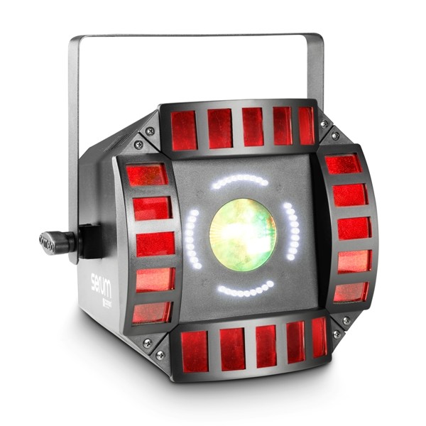 Como foco 3 en 1, el Cameo Serum combina los efectos derby, moonflower y estrobo. Estos efectos se pueden utilizar por separado o en cualquier combinación, y se pueden controlar individualmente en todos los modos operativos. De los efectos derby se encargan dos LED RGB de 9 vatios, mientras que 16 LED rojos, verdes, azules y blancos de 5 mm generan el colorido efecto moonflower. El estrobo regulable de 0 a 20 Hz utiliza 36 LED blancos de 5 mm. El modelo Cameo Voodoo por su parte, despliega efectos derby y estrobo en un solo foco y funciona con 20 LED RGBA de 3 vatios con Single Pixel Control, y da lugar a colores intensos y brillantes, mientras que el estrobo parpadea con doce LED blancos de 1 vatio cuya velocidad se puede configurar de 0 a 20 Hz.