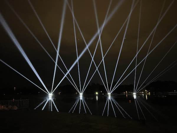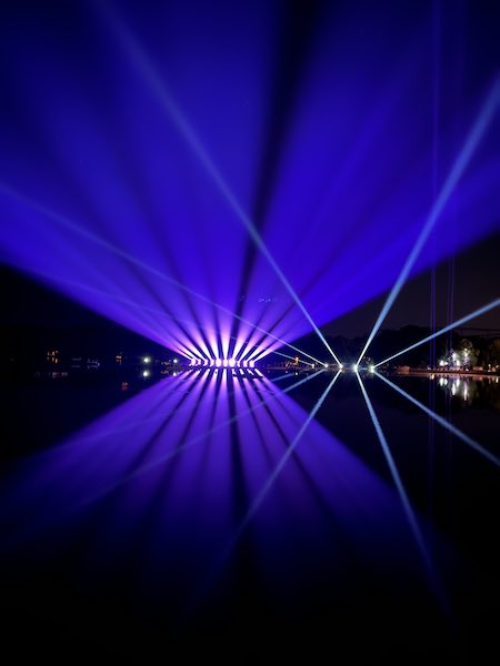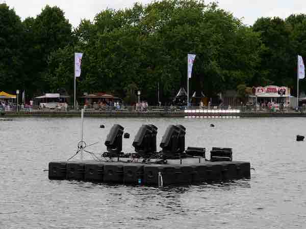 “Maschsee es un área al aire libre junto al agua muy grande con capacidad para entre 50.000 y 80.000 espectadores. Por lo tanto, necesitaba luces con clasificación IP65 para hacer frente al entorno junto al agua y que fueran brillantes para poder cubrir las grandes distancias de proyección”, dijo Hillenkötter. “Es bastante complicado hacer un espectáculo en el agua y fue extremadamente difícil encontrar personal y equipo, especialmente con clasificación IP65, en esta era posterior a la pandemia, lo que nos presionó un poco más, así que estaba buscando aparatos que me dieran una buena selección de colores y el juego de herramientas más grande que pudiera encontrar en una sola luz”.