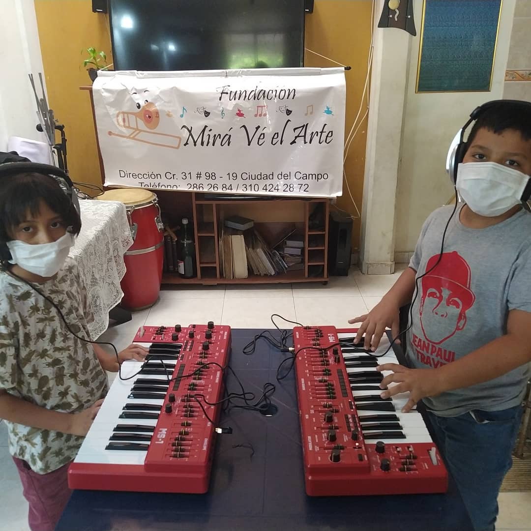 La Fundación Mirá Ve el Arte, ubicada en Ciudad del Campo en el corregimiento de Juanchito, zona rural de Palmira, en Colombia, recibió recientemente la donación de dos sintetizadores y dos audífonos Behringer, a través la empresa local Super Audio para beneficio en la enseñanza de música de los niños de la fundación.