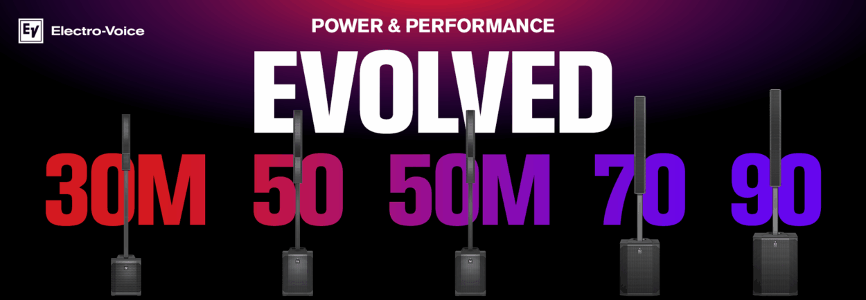 También estará presente la serie Evolve, con las columnas Evolve 30M, 50 y 50M, que ahora recibe refuerzo con las nuevas Evolve 70 y Evolve 90, ampliando las opciones de potencia y portabilidad ya conocidas de la gama.