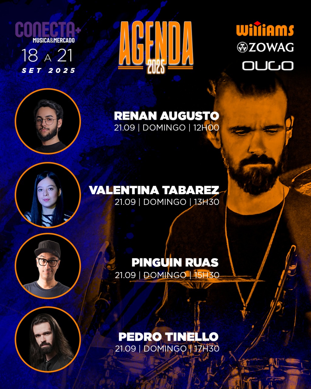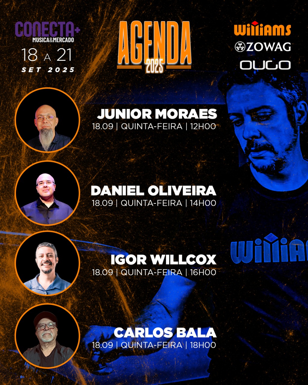 Las marcas brasileñas Williams y Zowag Drums confirmaron su presencia en Conecta+ Música & Mercado 2025, que se realizará del 18 al 21 de septiembre, en el Transamérica Expo Center, en São Paulo. El público podrá disfrutar de lanzamientos inéditos, demostraciones de productos, clínicas y presentaciones con artistas invitados.