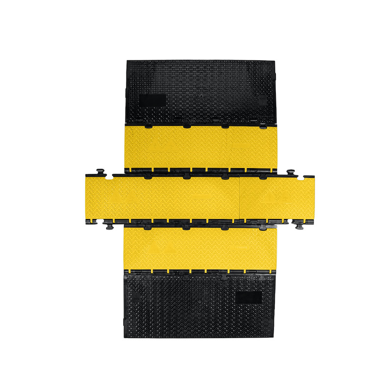 Con una inclinación de 6°, el módulo de la rampa cumple prácticamente con todos los requisitos y normas relativas al acceso para personas con discapacidad a los eventos. Gracias a su leve pendiente, la serie MIDI 5 2D facilita a los usuarios de sillas de ruedas, entre otros, cruzar las rampas sin dificultad, y al mismo tiempo es lo suficientemente robusta para soportar el peso de carretillas elevadoras y camiones. También cuenta con la superficie LaserGrip de Defender, que con su diseño ergonómico y su estructura minimiza el riesgo de mover accidentalmente toda una línea de pasacables.