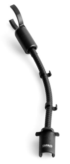 El accesorio GSM4000 Gooseneck Shock Mount tiene un clip en el extremo donde la cápsula d: dicate se puede montar fácilmente con un preamplificador conectado a él. Dependiendo de la situación, los usuarios pueden implementar el nuevo MMP-G Modular Active Cable para soluciones inalámbricas o el MMP-E Modular Active Cable para soluciones cableadas. El GSM4000 tiene una solución de montaje de choque integrada que asegura que el sonido no es afectado por factores extraños tales como el ruido de manejo o vibraciones transferidas del instrumento. Además, tiene el mismo diámetro que el cuello de cisne de instrumento d: vote 4099 de DPA, lo que significa que la solución d: dicate ahora se puede montar directamente en una amplia gama de instrumentos usando soportes y clips de instrumentos d: vote.