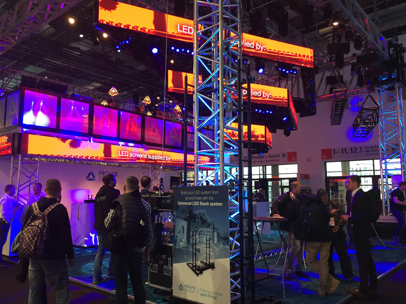 Mientras tanto, el stand de Prolyte mostró los nuevos Verto H40V y H40R, con el sistema de acoplamiento Verto. El Box Corner 40R HD ofrece una mayor robustez y versatilidad, siendo válido tanto para la serie 40 como Verto 40.