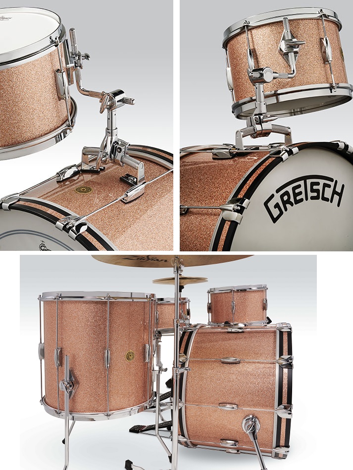 Gretsch también está presentando una nueva opción en las baterías USA Custom y Broadkaster; la Heritage Build. Esto captura la era inicial del legado de Gretsch Drums, incorporando longitudes de varillas de tensión que van a lo largo de las conchas de garra en garra. Este aspecto de estilo vintage está disponible en cualquier acabado de drum con las varillas disponibles en diferentes longitudes para adaptarse a las diferentes profundidades de las conchas.