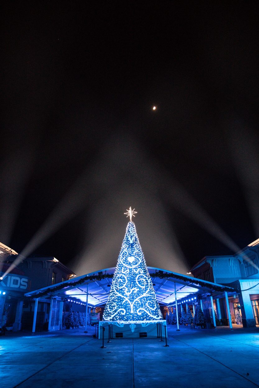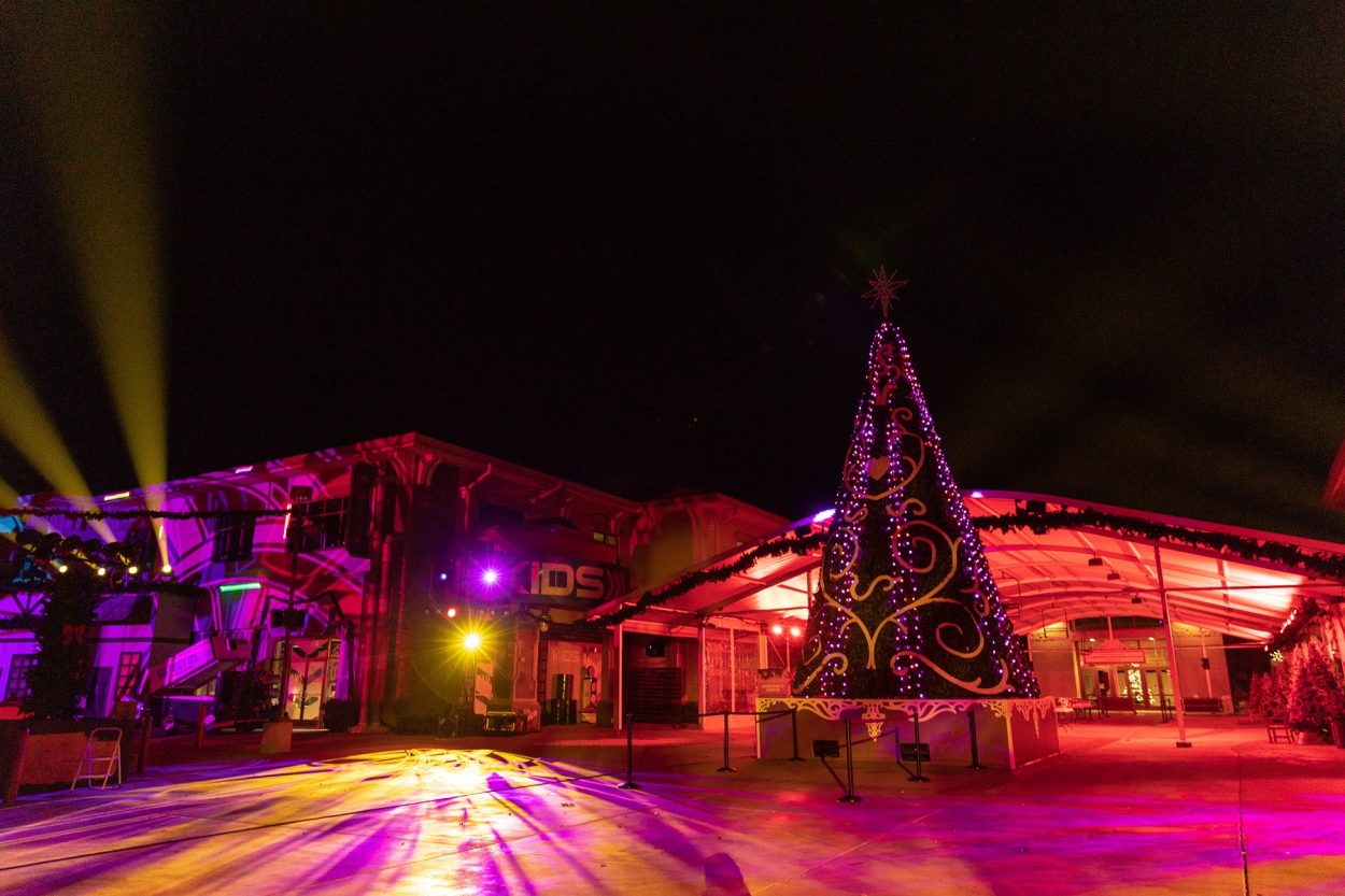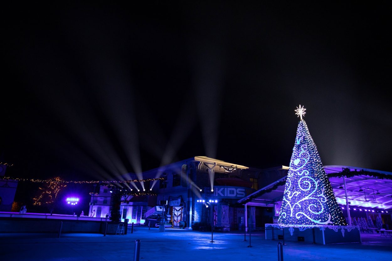 La iglesia creó una ciudad navideña entera con una pista de patinaje sobre hielo, un alto árbol navideño y un show de luces especial usando aparatos con grado de protección IP de la marca Elation.