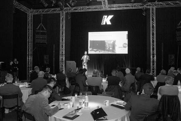 El especialista de producto Francesco Maffei le dio a los distribuidores un vistazo de los nuevos productos de K-array que actualmente están en producción y serán lanzados en las principales ferias de la industria en 2017.