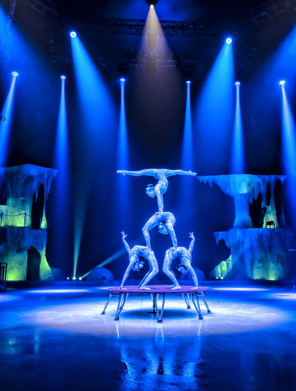 El show español Circo de Hielo 2 presenta actos acrobáticos sobre hielo, iluminados empleando aparatos móviles de la marca Robe.