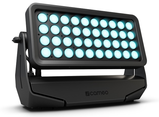 Cameo ZENIT W 600 – Cameo Lights, una marca de Adam Hall Group, presenta el ZENIT W 600, un washer de gran potencia con el indicativo ETL Listed y certificación IP65 para uso en exteriores. Con sus 40 LED RGBW de 15 W de CREE, el ZENIT W 600 genera unos 21.000 lúmenes y produce una mezcla de color homogénea. Su tecnología de alta resolución de 16 bits le permite generar cambios de color y atenuación con calidad profesional. Además de los conectores convencionales DMX y RDM, este washer LED también posee un receptor integrado W-DMX de 2,4 GHz para transmitir comandos DMX de forma inalámbrica.
