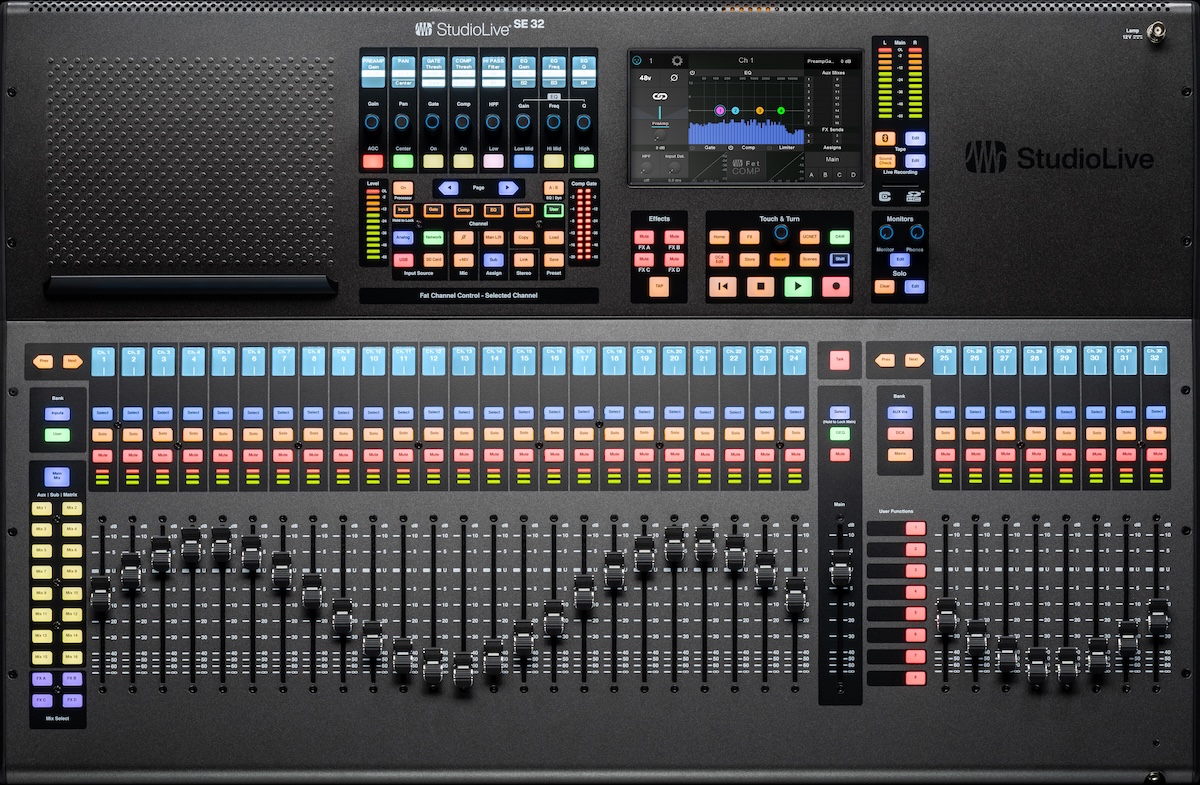 - StudioLive SE 32: 33 faders y 33 preamplificadores, con entrada Bluetooth, displays Scribble Strip y funciones extendidas de canal.