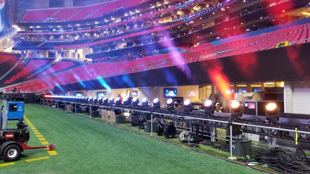 Otros dispositivos de iluminación Elation se utilizaron en diferentes partes del estadio, como el nuevo cabezal móvil de perfil LED Artiste Picasso, empleado como luces delanteras en el estudio de transmisión del estadio CBS Sports, y el spot elipsoidal LED Colour 5 Profile, que fue utilizado en el set del campo. Antes del Super Bowl, los productos de Elation fueron vistos en todo Atlanta, apoyando los numerosos eventos que rodean el juego.