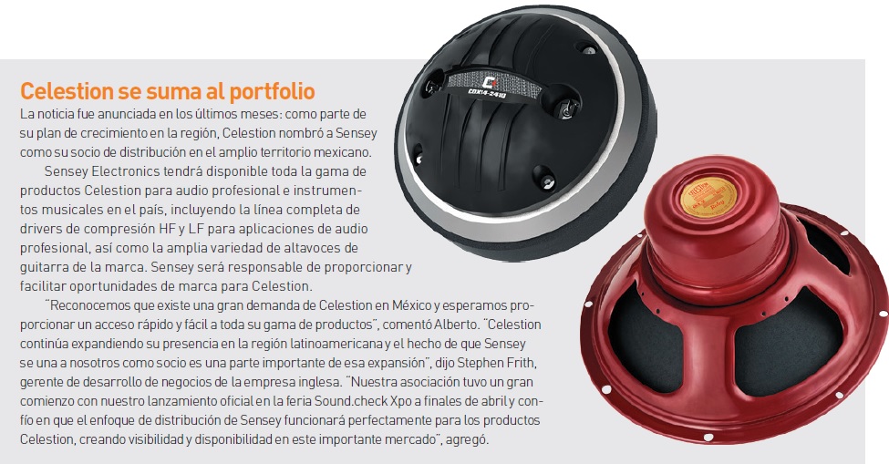 Alberto: Nuestra mayor exhibición se da cada año en Soundcheck Xpo, en donde contamos con un salón privado de exhibición para todo nuestro catálogo de marcas. Este año presentamos nuevos productos, extensión de línea y un nuevo socio comercial, en ese orden de ideas: Nuevas mezcladoras Claymore; el nuevo HCF PRO 60 de Backstage, y la incorporación a la familia de Sensey de Celestion, una marca de renombre internacional en el segmento de bocinas. ¡Pero sigan esperando noticias! Pues estaremos presentando más novedades este mismo año.