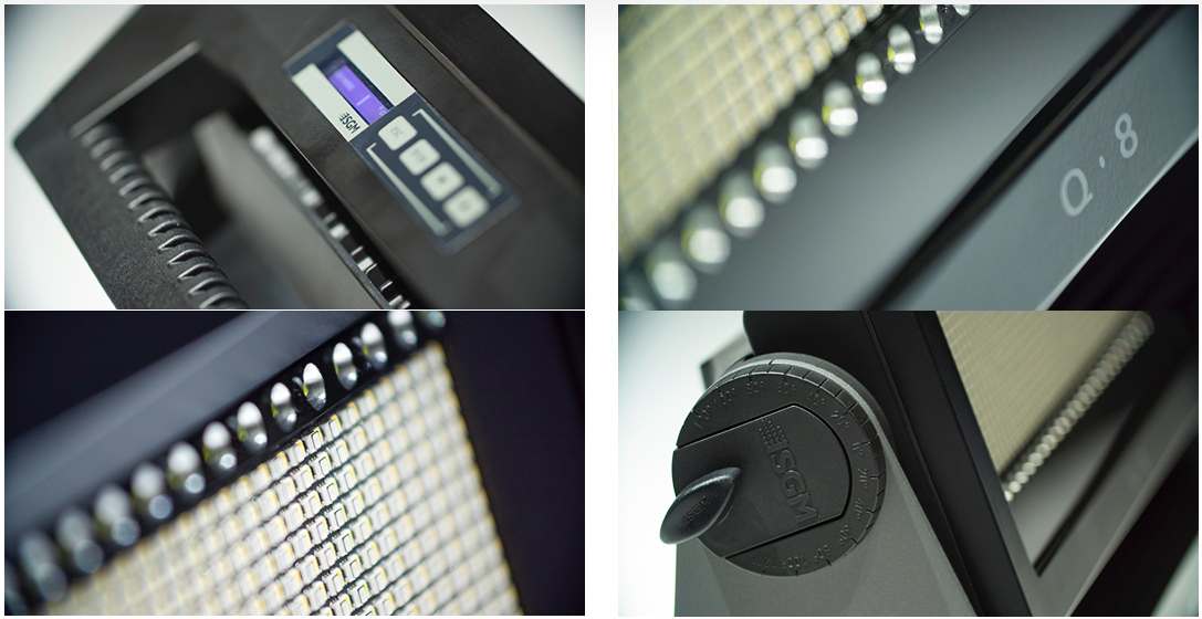 El nuevo Q-8 de SGM combina el tamaño compacto y el bajo consumo de energía de la serie Q-7, la ergonomía del Q-10, y la potente de strobo/blinder del G-7 BeaSt en 2 matrices lineales separadas. Esta luz de alta TLCI Dualsource cuenta con una mezcla RGBW, control de mapeo de píxeles, ángulos de dispersión de 110º y 84°, y todos los beneficios de los marcos de filtro magnéticos fáciles de montar. Es una luz de estudio impermeable para distancias cercanas, un efecto estrobo para touring, y un aparato de visión directa en un diseño ligero y robusto para efectos flood/blinder de tamaño mediano.