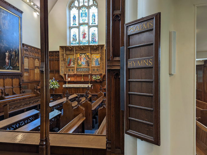 Al igual que muchos sitios antiguos de culto cristiano en todo el Reino Unido, la Capilla presenta una serie de desafíos al instalar un sistema de refuerzo de voz. Su diseño interno naturalmente reverberante requiere una colocación cuidadosa de los altavoces con características de dispersión adecuadas para lograr la inteligibilidad requerida, la estructura del edificio de la era Stuart debe respetarse en términos de cómo se monta e instala el equipo, mientras que la estética del espacio como un lugar de culto exige que todo sea lo más invisible posible.