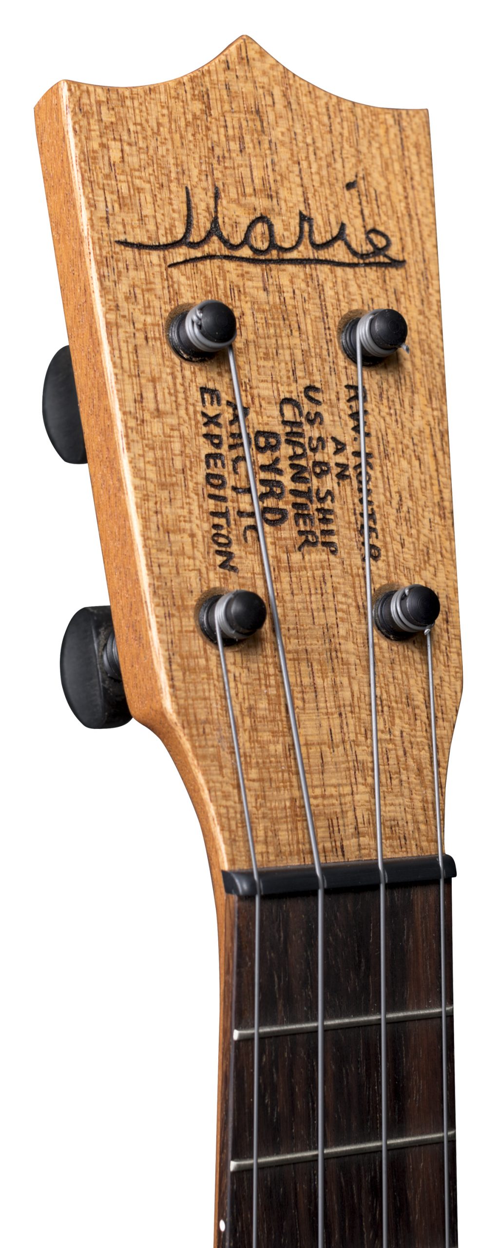 La historia de este instrumento es interesante. El Ukelele Konter fue propiedad de Richard Konter, “Ukulele Dick”, quien se unió a la famosa expedición del almirante Richard Byrd al Polo Norte en 1926. Durante la expedición, obtuvo firmas en cada oportunidad que tuvo, incluidos las de los 45 tripulantes de la expedición Admiral Byrd y el Almirante mismo. Es el único artefacto que viajó al Polo Norte porque fue contrabandeado bajo el asiento del avión.