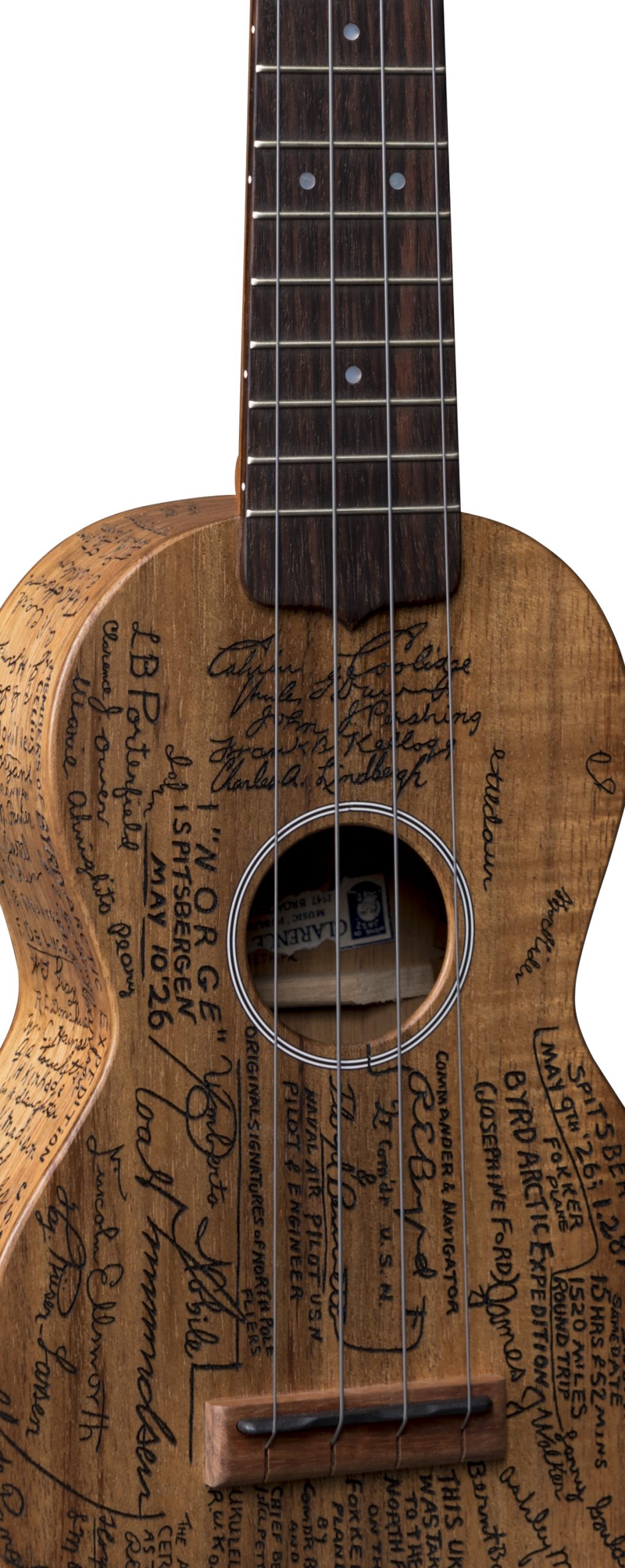 El ukelele Konter original también hizo un viaje a la Casa Blanca y fue firmado por el presidente Calvin Coolidge, junto con el vicepresidente, el secretario de Estado, el secretario de Marina, Theodore Roosevelt Jr., Amelia Earhart, Thomas Edison y muchos, muchos más. El ukelele soprano contiene más de 210 firmas. La réplica incluye todas las firmas, que han sido cuidadosamente grabadas con láser en la madera de koa. El Ukelele Konter también presenta afinadores de clavijas de violín de estilo vintage y una réplica de la etiqueta interior original.