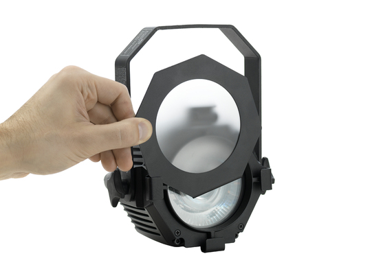 El QuikBeam es un proyector LED con lente fresnel y zoom de 13° a 60°, capaz de funcionar tanto como uplight preciso, spotlight compacto o luz de acento en escenarios, sets de televisión y eventos corporativos.
