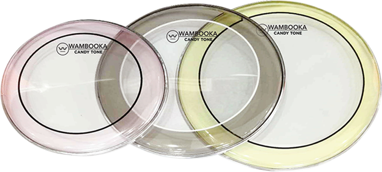 – Candy Tone: Tecnología de sellado No Bubbles de dos capas de 14 mil, transparente. Presenta un sonido gordo debido a la doble capa. Es un cabezal de sintonización pre-amortiguado, diseñado para filtrar armónicos y acentuar frecuencias medias a bajas, tiene un sustain controlado con larga durabilidad. Ha sido pensado para ser tocado con cualquier tipo de baquetas y es ideal para los estilos de rock and roll y rock clásico. Disponible en tamaños de 8″ – 22″. Está disponible en cabezas de colores rosa, gris y amarillo.