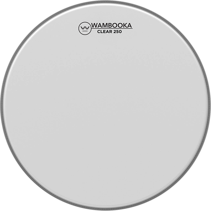 – Clear 250: El parche transparente presenta un sonido abierto, con mucho ataque, suavemente amortiguado. Construidos con película transparente de una capa de 10 mil, los parches Clear 250 mantienen una tasa limitada de connotaciones y están disponibles en tamaños de 10″ – 24″.